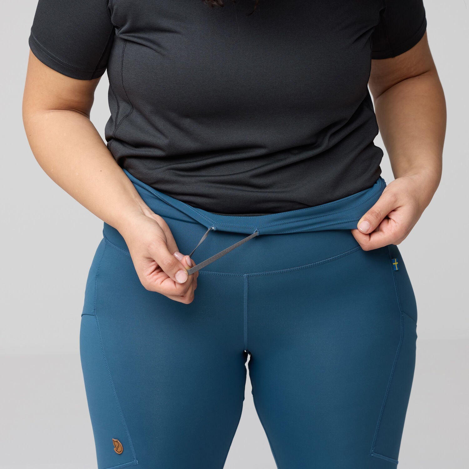 Fjallraven Women's Abisko Trekking Tights Pro are highly technical, made from a double-knitted, moisture-wicking stretch fabric with recycled polyester and a matte, opaque finish. The pockets are tilted for easier access and the 7/8-length legs fit really well with socks and hiking boots. Reinforcements in high-stretch Cordura offer extra protection in rough terrain or when sitting on damp ground.