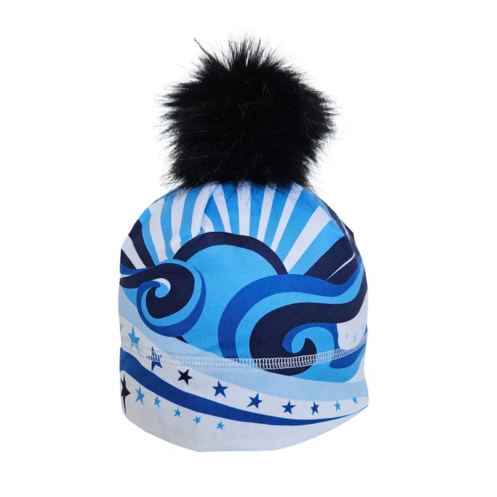 Recycled polyester and spandex blend, featuring illustrations from your favorite base layer. Each piece features original artwork from a Colorado artist with a modern twist on retro ski fashion. Remove the pom of this beanie to fit under your helmet.